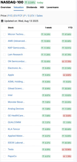 You can analyze the SDAX financials of the individual stocks on the Valuation tab. There you will find all information on stock performance, valuations of SDAX individual stocks (P/E, EV/FCF, P/S & EV/Sales) and analyses according to the Dividends, High-Growth-Investing and Levermann Strategy.